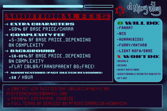 I retain the right to reject any commission for any reason. Please read the list of things I can or can't draw, otherwise ask.